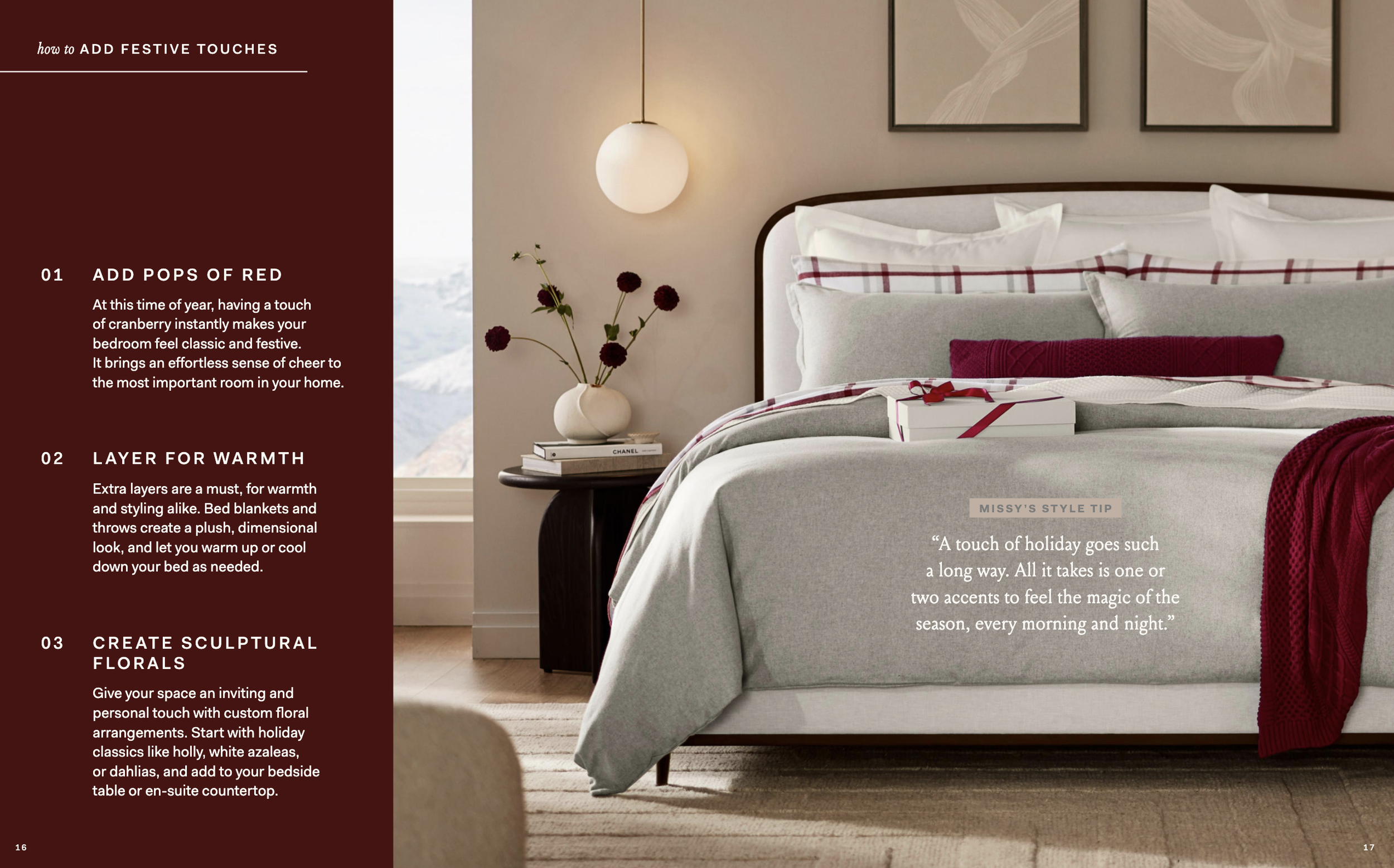 Partnered with design on an immersive holiday catalog creating a 30-page spread from scratch. With complete editorial freedom, my design partner and I brainstormed and executed each spread with inspiring visuals and style-focused narratives—for a piece customers would want to flip through again and again.